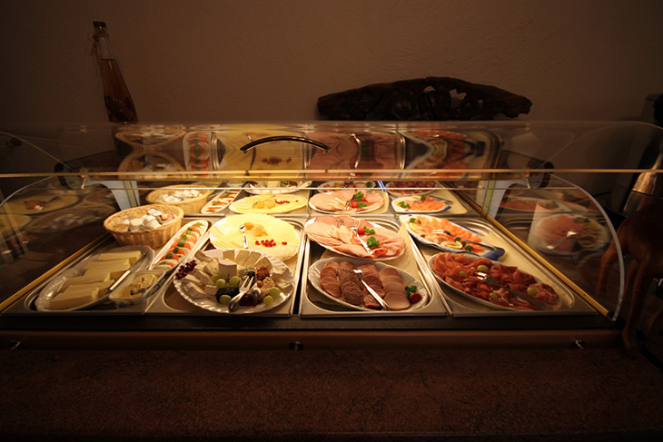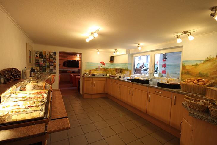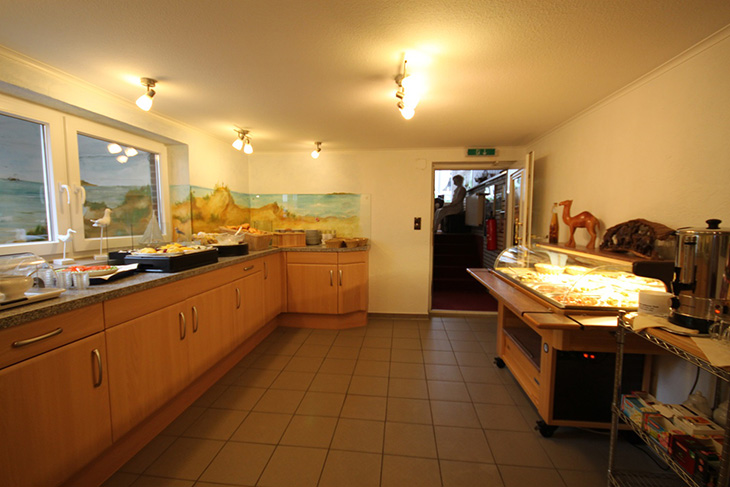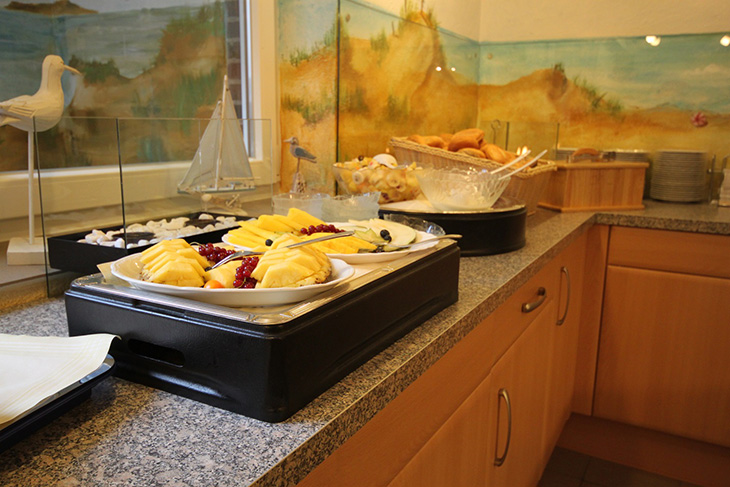 Wir bieten Ihnen ein Frühstücksbuffet an von 8:00 - 10:00 Uhr. Auf Anfrage sind auch frühere Zeiten möglich.
